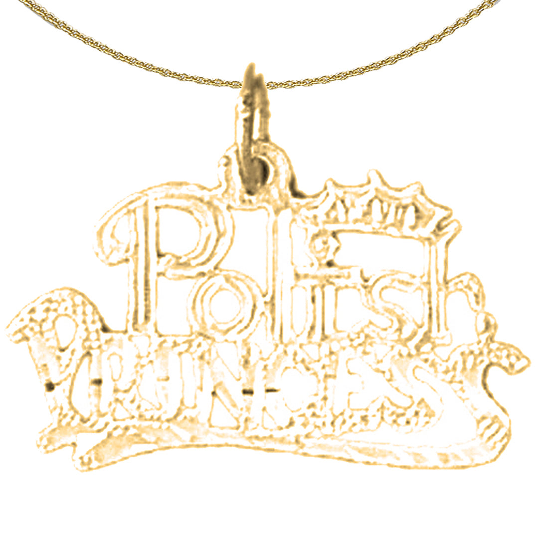 This is an elegant 14K or 18K gold polish princess pendant. This 14K or 18K gold pendant measures in length by in width. Measurement includes bale. JewelsObsession creates all gold jewelry in our state of the art manufacturing facility.
