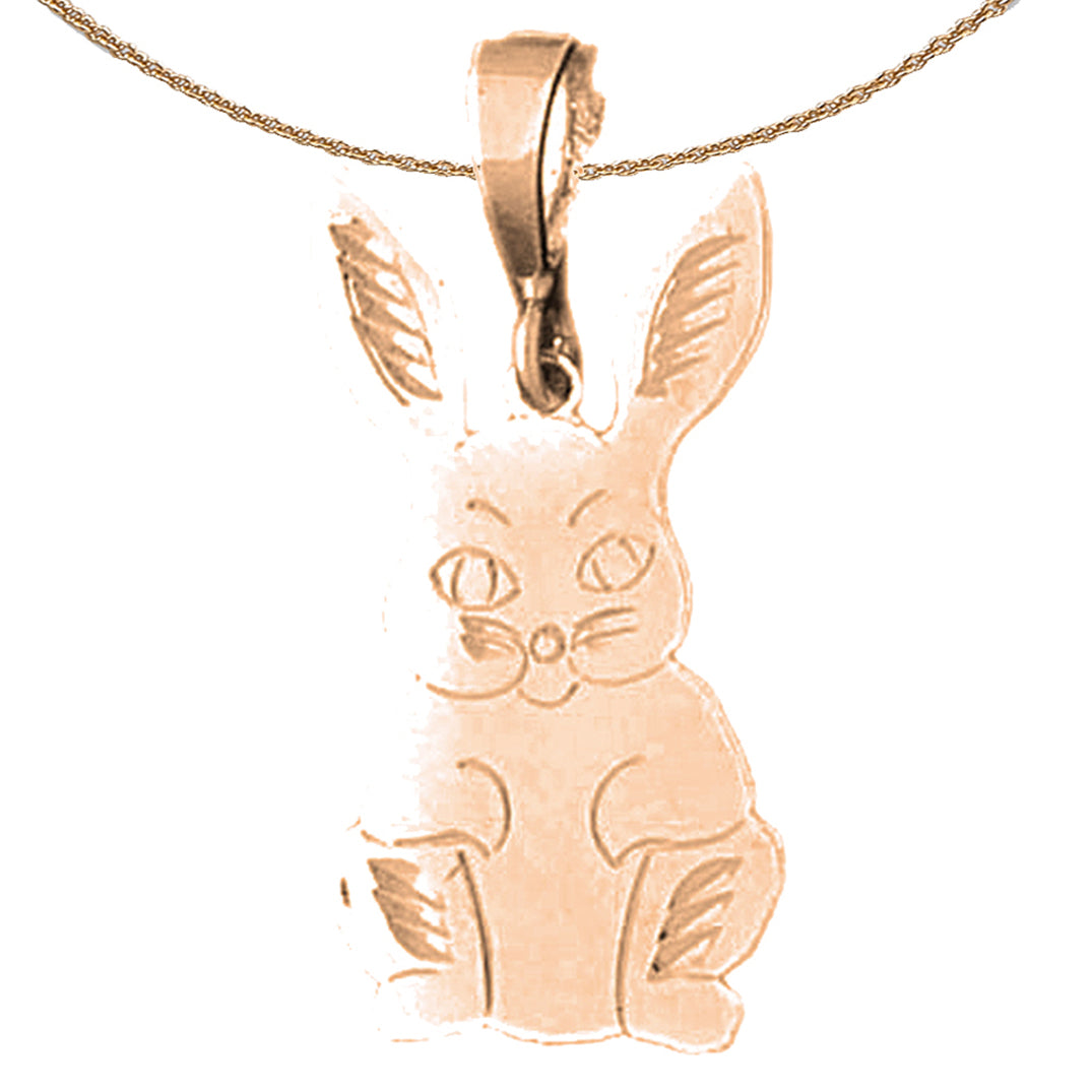 This is a beautiful 10K, 14K or 18K gold rabbit pendant. This 10K, 14K or 18K gold pendant measures 33 mm in length by 15 mm in width. Measurement includes bale. JewelsObsession creates all gold jewelry in our state of the art manufacturing facility.
