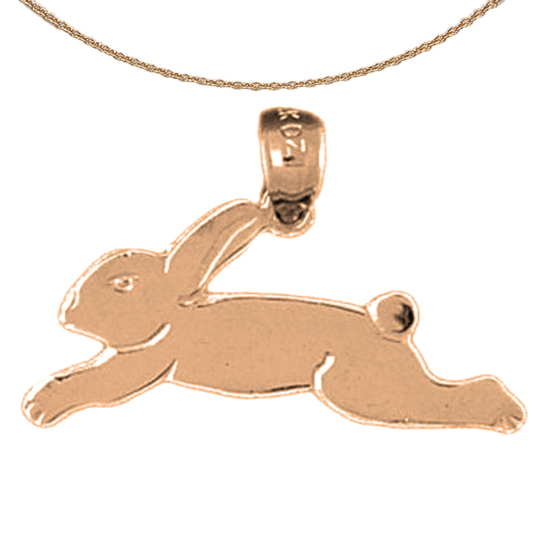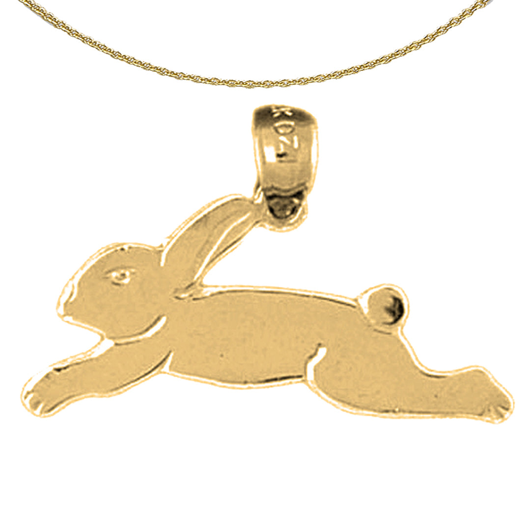 This is an elegant 14K or 18K gold rabbit pendant. This 14K or 18K gold pendant measures 17 mm in length by 28 mm in width. Measurement includes bale. JewelsObsession creates all gold jewelry in our state of the art manufacturing facility.