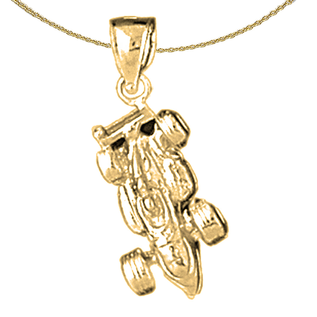 This is a stunning 10K, 14K or 18K gold race car pendant. This 10K, 14K or 18K gold pendant measures 19 mm in length by 12 mm in width. Measurement includes bale. JewelsObsession creates all gold jewelry in our state of the art manufacturing facility.