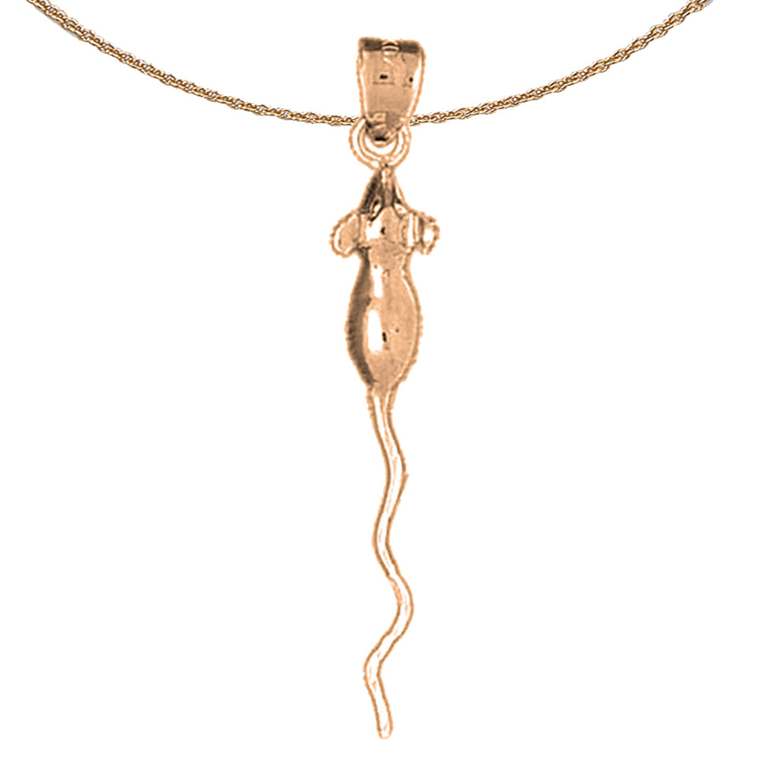 This is an elegant 14K or 18K gold rat pendant. This 14K or 18K gold pendant measures 42 mm in length by 6 mm in width. Measurement includes bale. JewelsObsession creates all gold jewelry in our state of the art manufacturing facility.