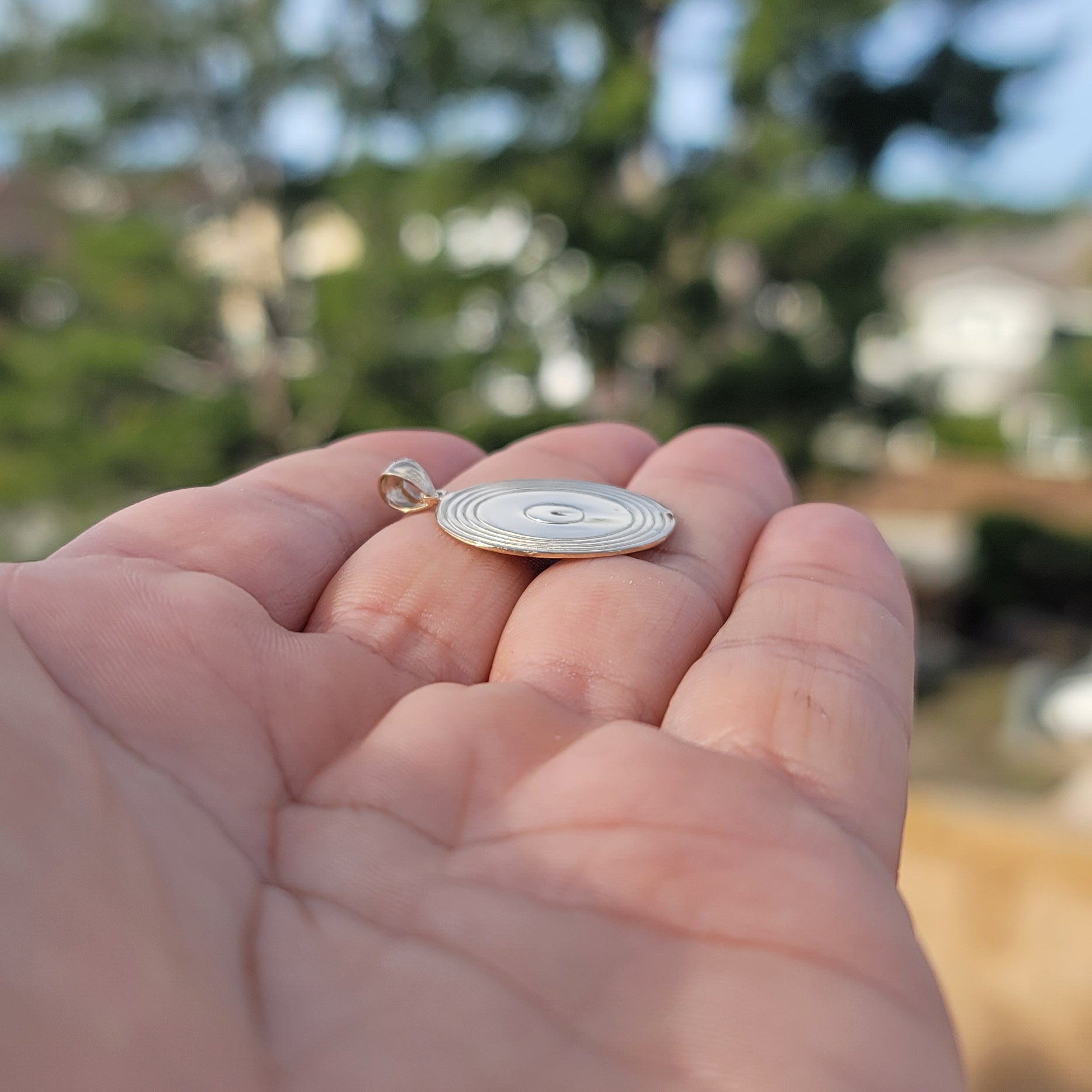This gorgeous 10K, 14K or 18K gold record pendant. This 10K, 14K or 18K gold pendant measures 30 mm in length by 23 mm in width. Measurement includes bale. JewelsObsession creates all gold jewelry in our state of the art manufacturing facility.