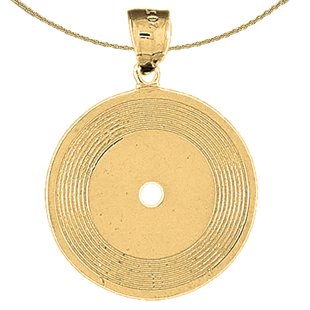 This gorgeous 10K, 14K or 18K gold record pendant. This 10K, 14K or 18K gold pendant measures 33 mm in length by 24 mm in width. Measurement includes bale. JewelsObsession creates all gold jewelry in our state of the art manufacturing facility.