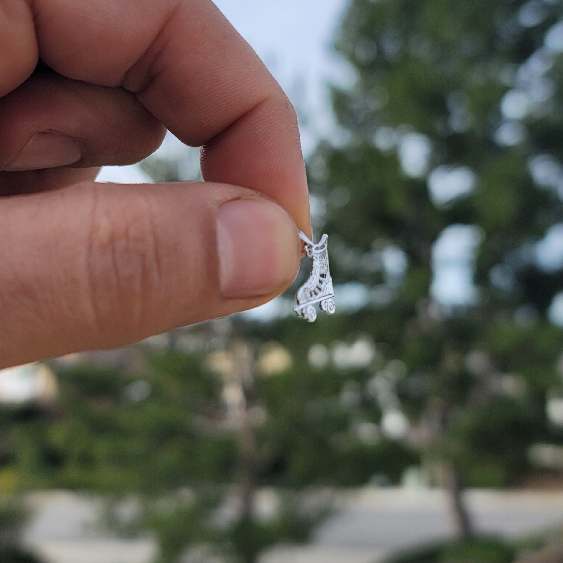This gorgeous 14K or 18K gold roller skates pendant. This 14K or 18K gold pendant measures 16 mm in length by 15 mm in width. Measurement includes bale. JewelsObsession creates all gold jewelry in our state of the art manufacturing facility.
