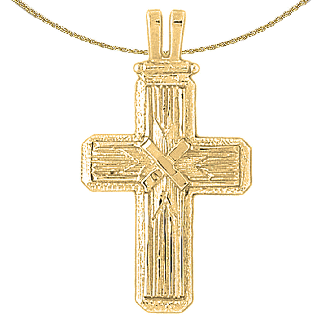 This is a beautiful 10K, 14K or 18K gold cross pendant. This 10K, 14K or 18K gold pendant measures 39 mm in length by 22 mm in width. Measurement includes bale. JewelsObsession creates all gold jewelry in our state of the art manufacturing facility.