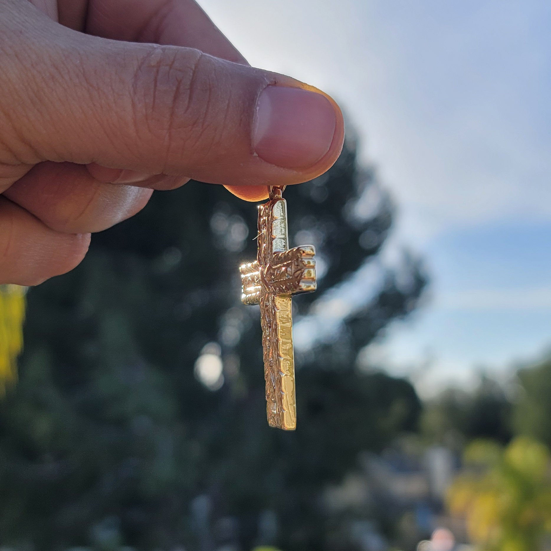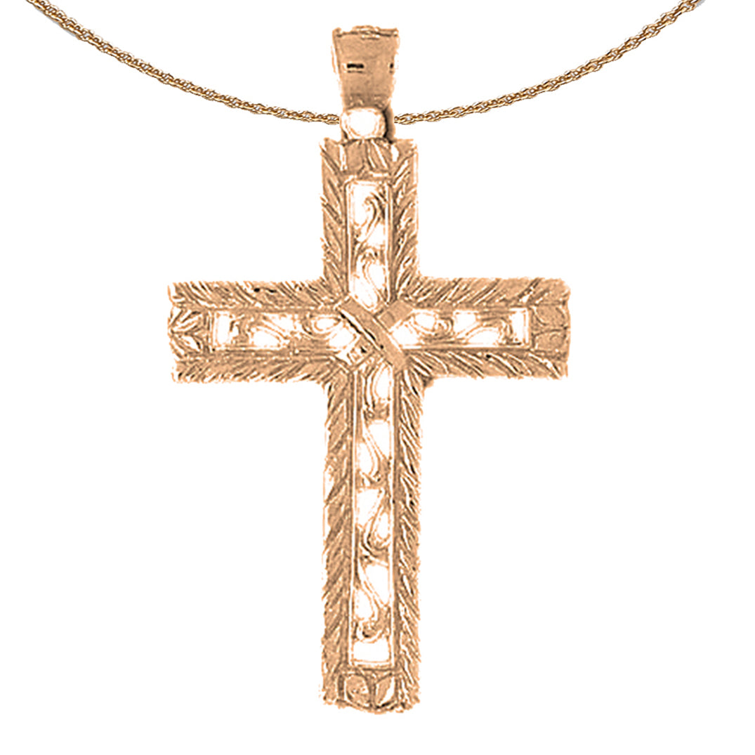 This gorgeous 10K, 14K or 18K gold cross pendant. This 10K, 14K or 18K gold pendant measures 55 mm in length by 32 mm in width. Measurement includes bale. JewelsObsession creates all gold jewelry in our state of the art manufacturing facility.