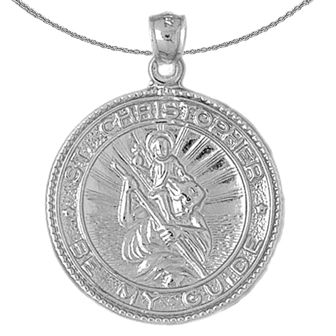 This is an elegant 10K, 14K or 18K gold st. christopher pendant. This 10K, 14K or 18K gold pendant measures 38 mm in length by 29 mm in width. Measurement includes bale. JewelsObsession creates all gold jewelry in our state of the art manufacturing facility.