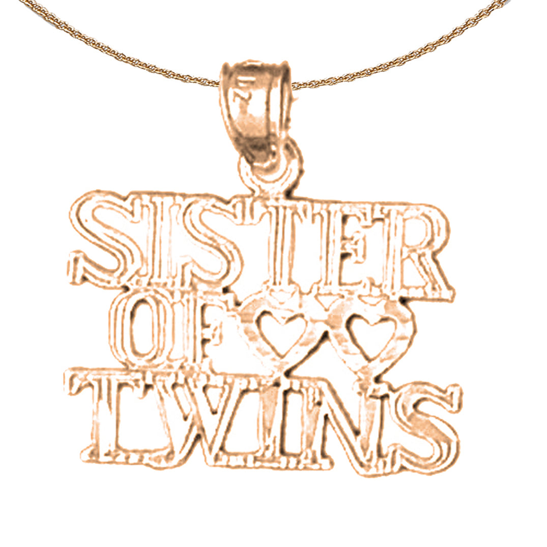 This is an elegant 14K or 18K gold sister of twins pendant. This 14K or 18K gold pendant measures in length by in width. Measurement includes bale. JewelsObsession creates all gold jewelry in our state of the art manufacturing facility.