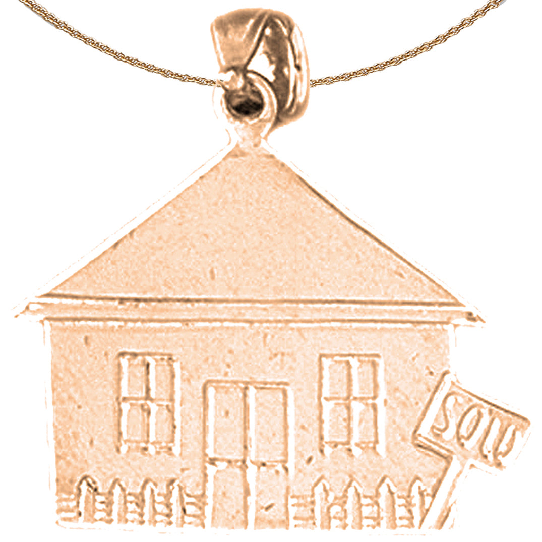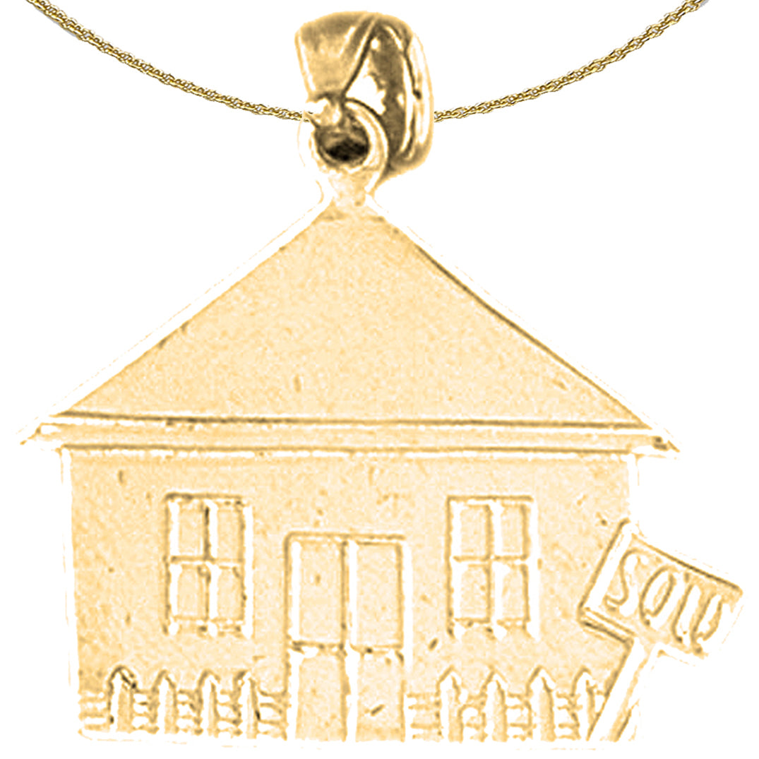 This gorgeous 14K or 18K gold sold house pendant. This 14K or 18K gold pendant measures 23 mm in length by 23 mm in width. Measurement includes bale. JewelsObsession creates all gold jewelry in our state of the art manufacturing facility.