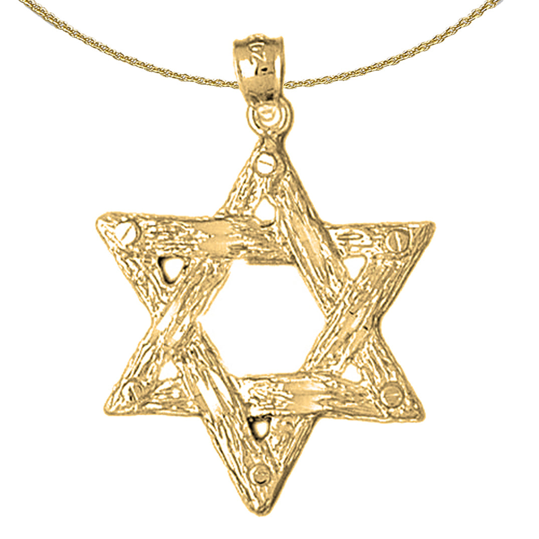 This gorgeous 10K, 14K or 18K gold star of david pendant. This 10K, 14K or 18K gold pendant measures 36 mm in length by 25 mm in width. Measurement includes bale. JewelsObsession creates all gold jewelry in our state of the art manufacturing facility.