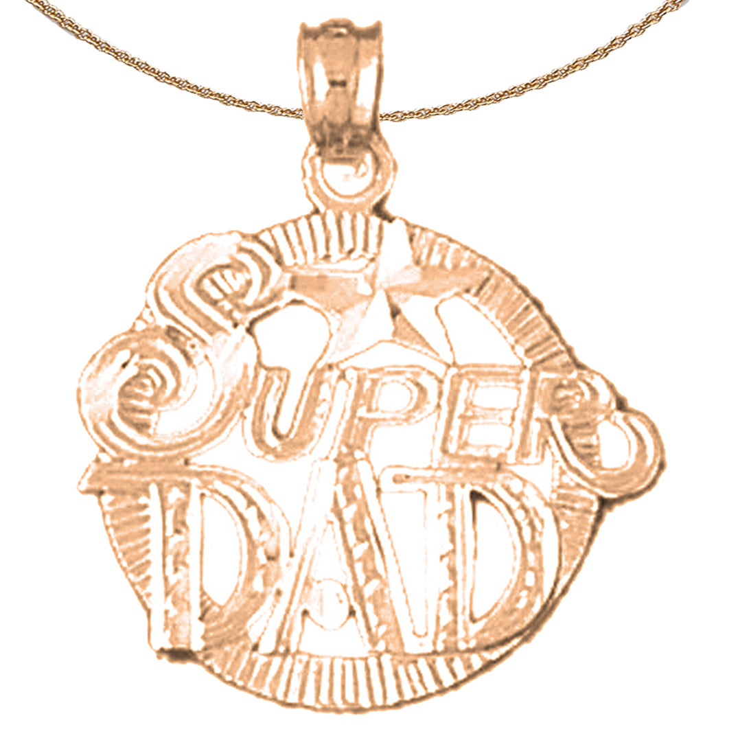 This gorgeous 14K or 18K gold super dad pendant. This 14K or 18K gold pendant measures in length by in width. Measurement includes bale. JewelsObsession creates all gold jewelry in our state of the art manufacturing facility.
