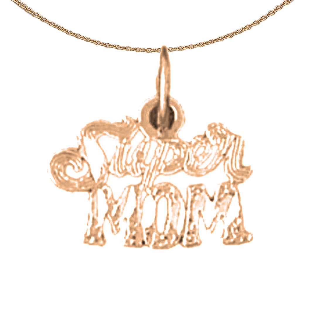 This is a beautiful 14K or 18K gold super mom pendant. This 14K or 18K gold pendant measures in length by in width. Measurement includes bale. JewelsObsession creates all gold jewelry in our state of the art manufacturing facility.