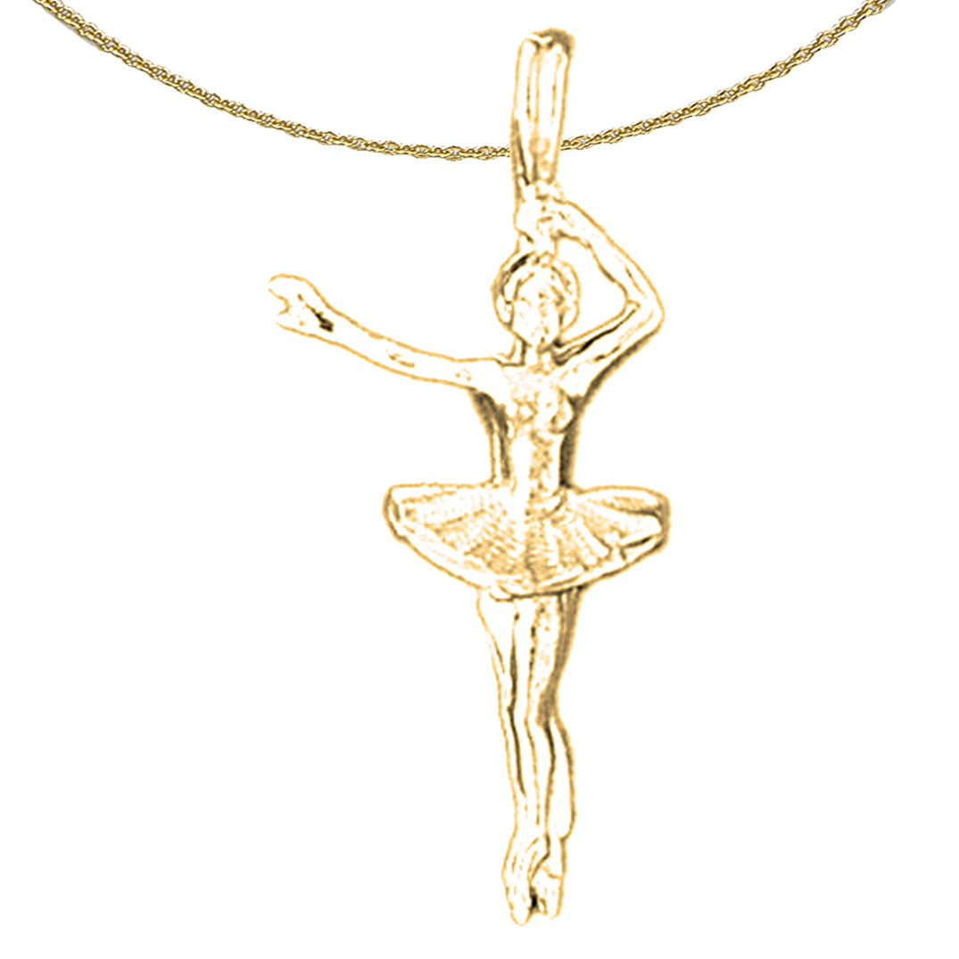 This gorgeous 14K or 18K gold ballerina pendant. This 14K or 18K gold pendant measures 32 mm in length by 15 mm in width. Measurement includes bale. JewelsObsession creates all gold jewelry in our state of the art manufacturing facility.
