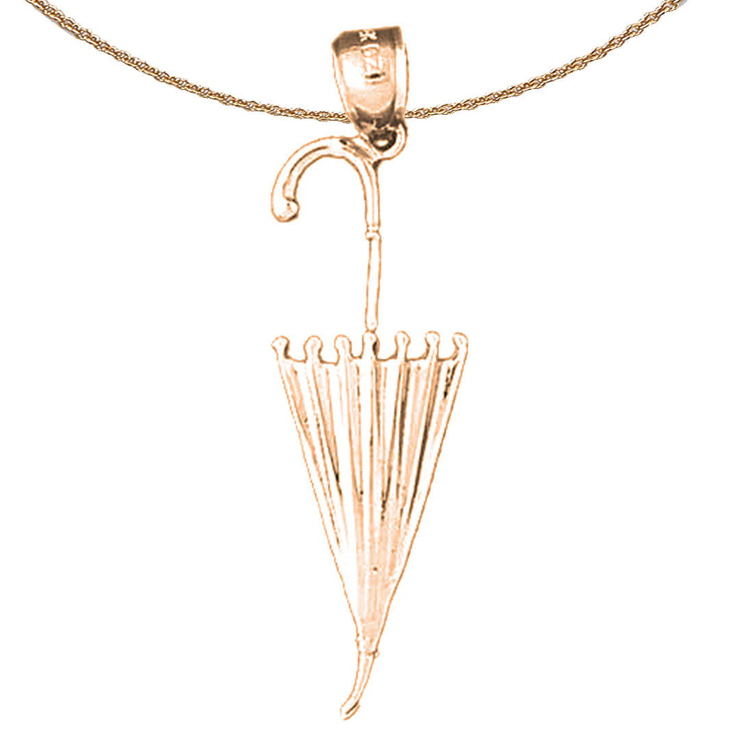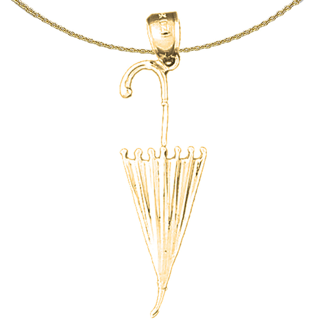 This is a beautiful 14K or 18K gold umbrella pendant. This 14K or 18K gold pendant measures 42 mm in length by 12 mm in width. Measurement includes bale. JewelsObsession creates all gold jewelry in our state of the art manufacturing facility.