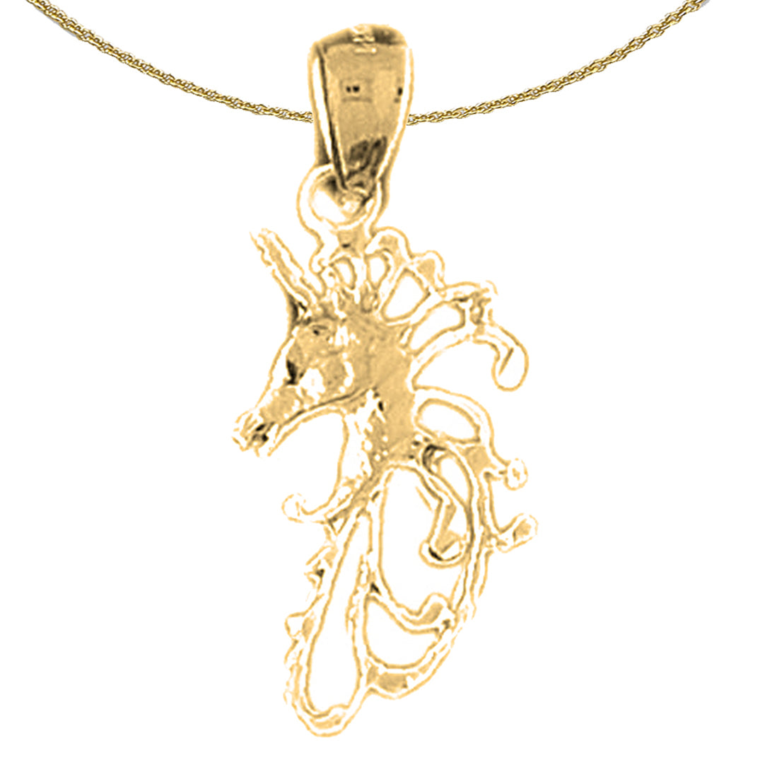 This gorgeous 14K or 18K gold unicorns pendant. This 14K or 18K gold pendant measures 22 mm in length by 12 mm in width. Measurement includes bale. JewelsObsession creates all gold jewelry in our state of the art manufacturing facility.