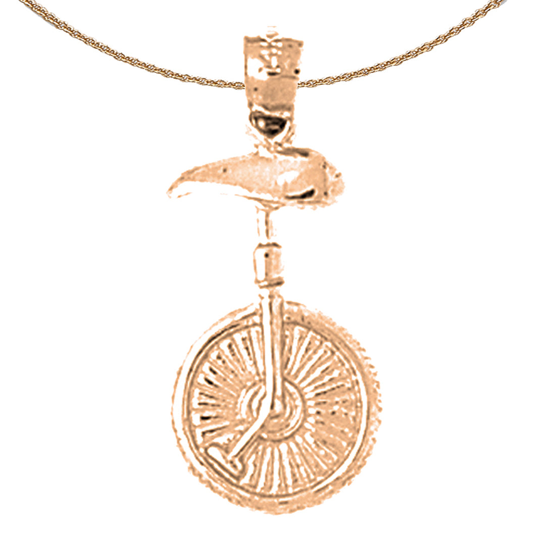 This is an elegant 14K or 18K gold unicycle pendant. This 14K or 18K gold pendant measures 24 mm in length by 11 mm in width. Measurement includes bale. JewelsObsession creates all gold jewelry in our state of the art manufacturing facility.