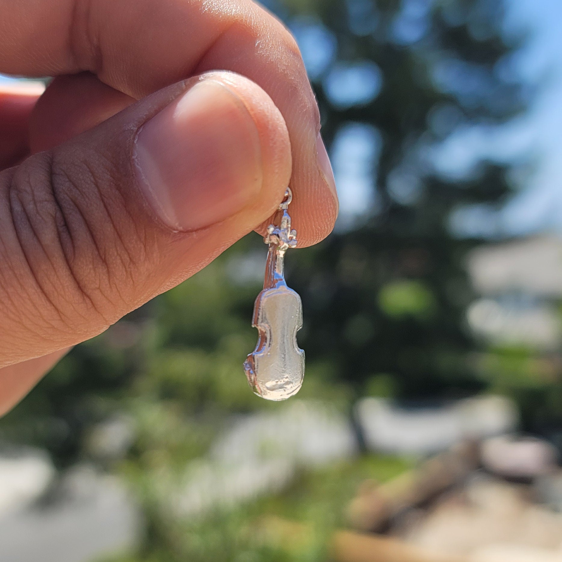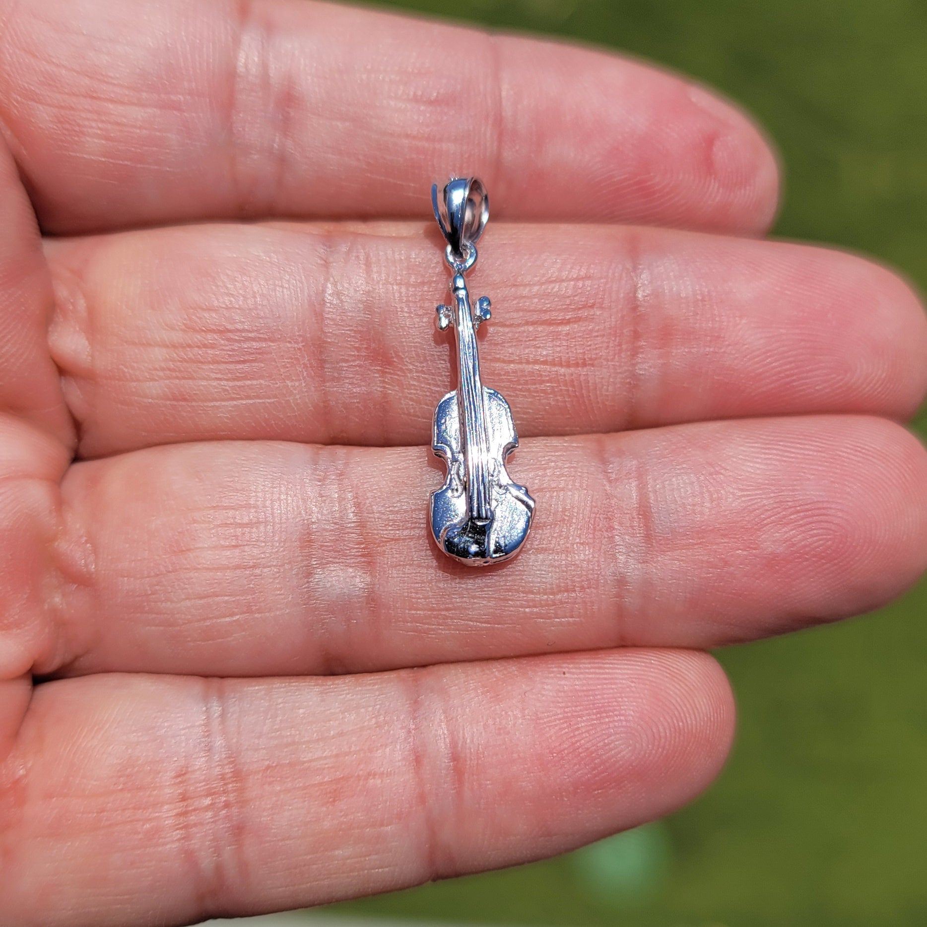This gorgeous 10K, 14K or 18K gold violin, viola pendant. This 10K, 14K or 18K gold pendant measures 31 mm in length by 8 mm in width. Measurement includes bale. JewelsObsession creates all gold jewelry in our state of the art manufacturing facility.