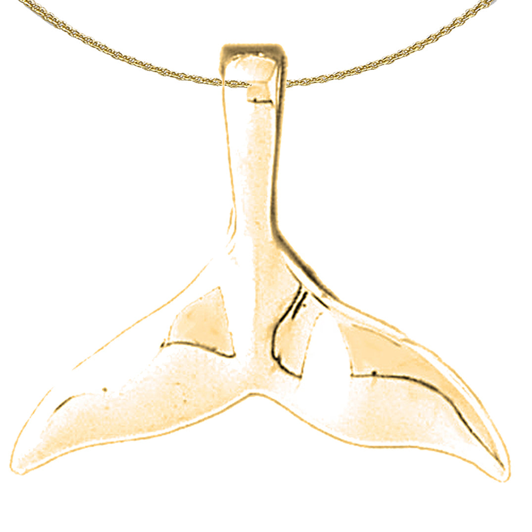This gorgeous 14K or 18K gold whale tale pendant. This 14K or 18K gold pendant measures 26 mm in length by 31 mm in width. Measurement includes bale. JewelsObsession creates all gold jewelry in our state of the art manufacturing facility.