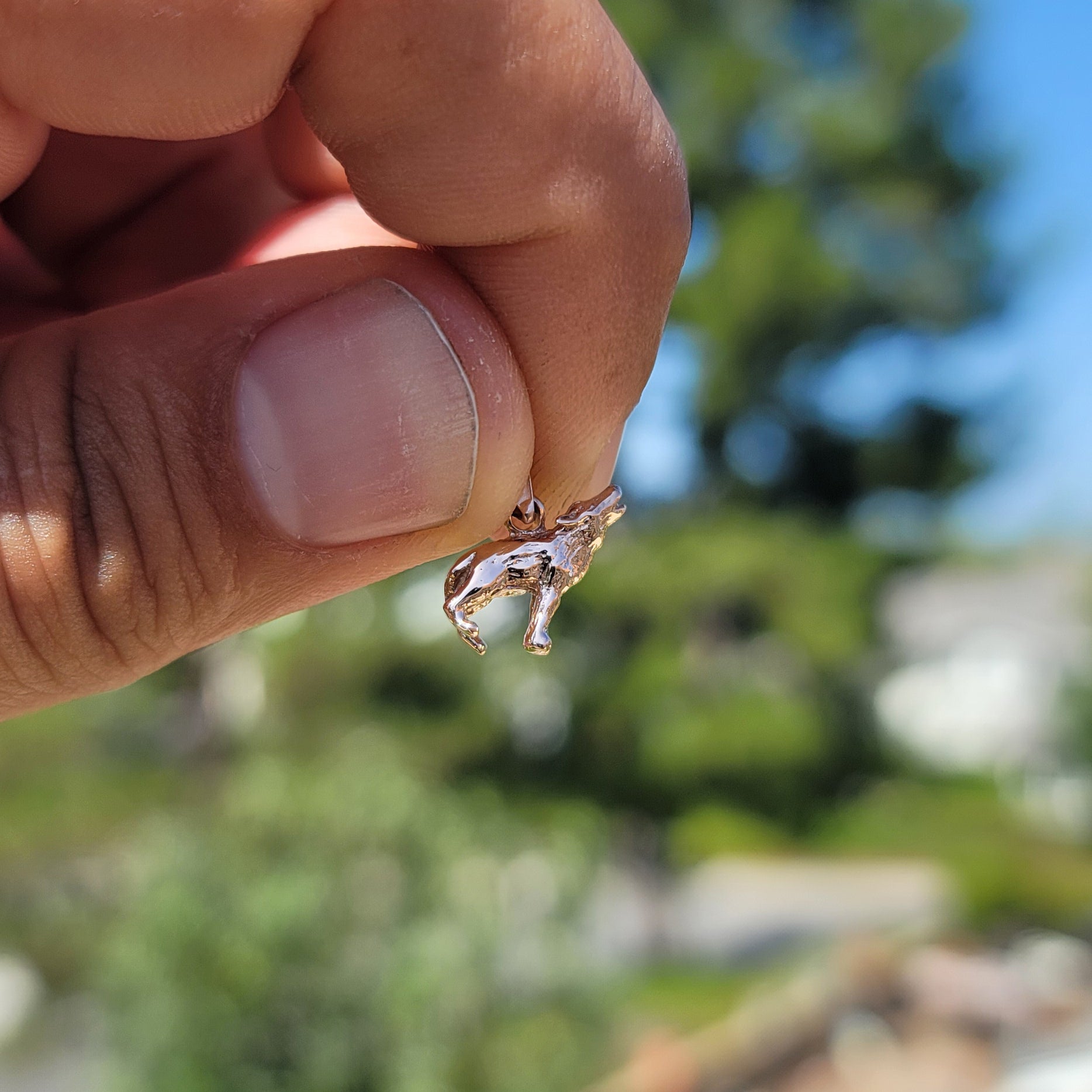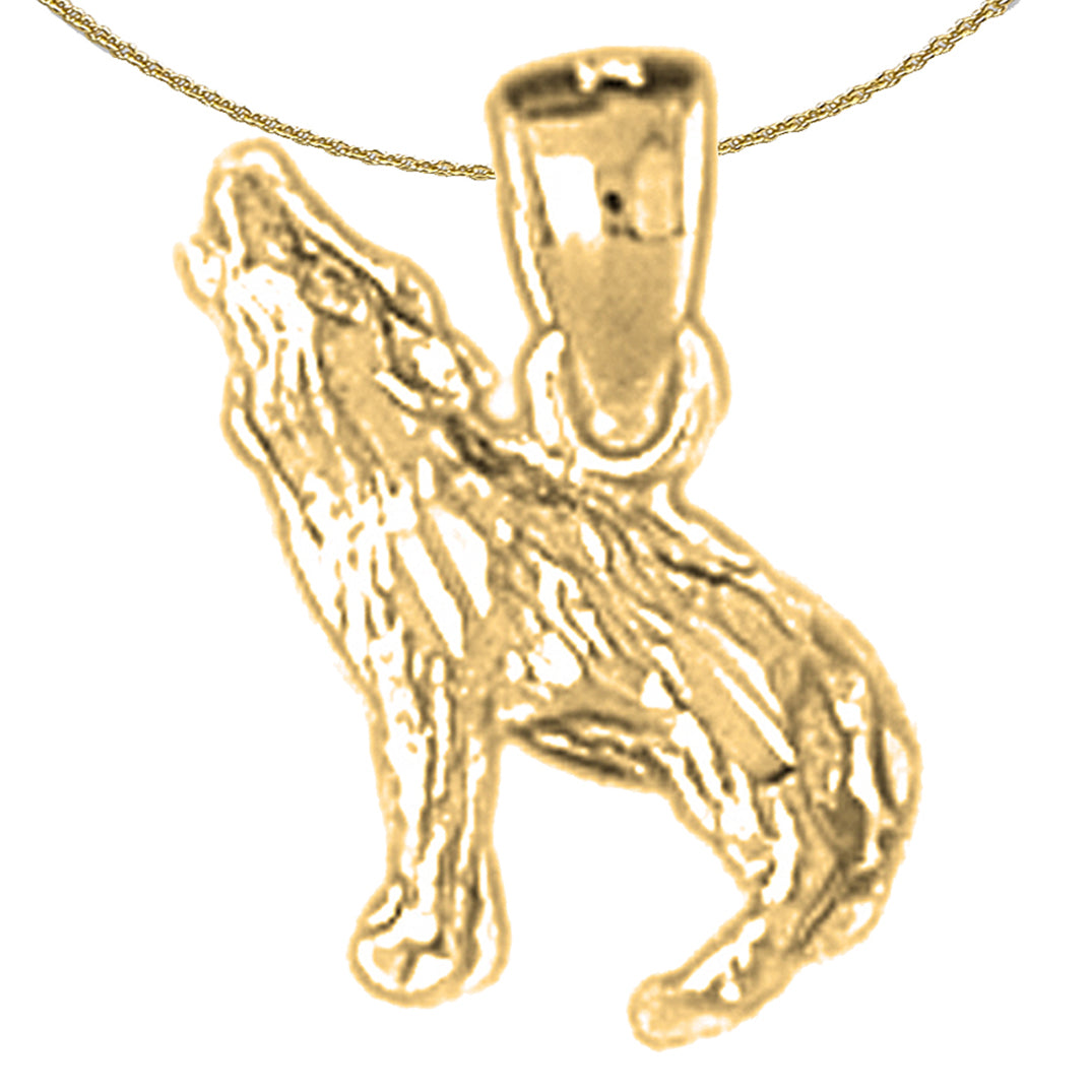 This is an elegant 14K or 18K gold wolf pendant. This 14K or 18K gold pendant measures in length by in width. Measurement includes bale. JewelsObsession creates all gold jewelry in our state of the art manufacturing facility.