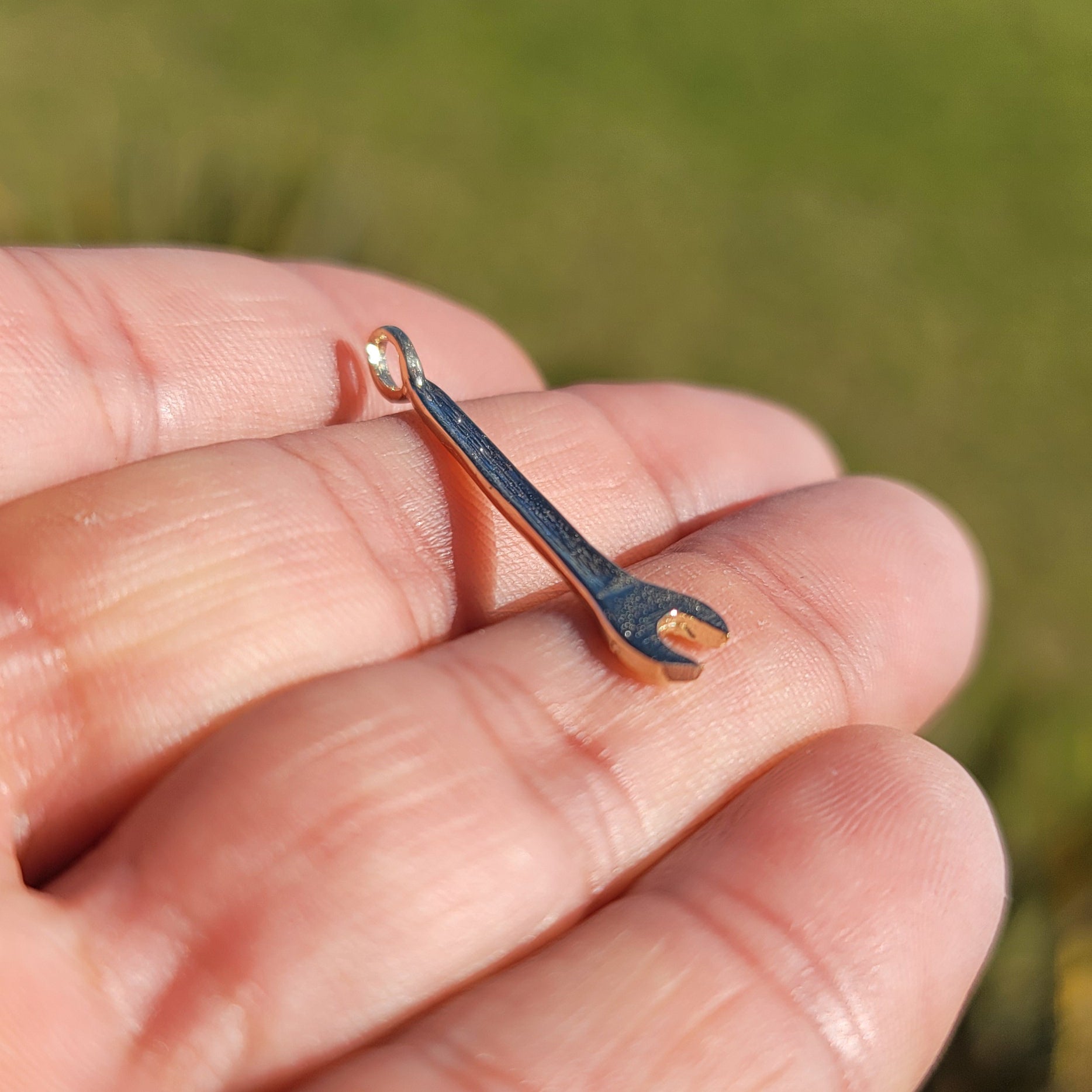 This gorgeous 14K or 18K gold wrench pendant. This 14K or 18K gold pendant measures 34 mm in length by 6 mm in width. Measurement includes bale. JewelsObsession creates all gold jewelry in our state of the art manufacturing facility.