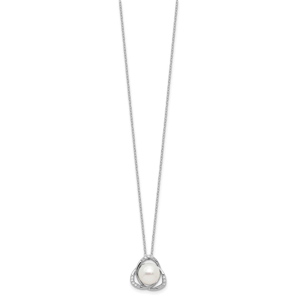Rhodium-plated Silver FWC Pearl CZ 17in Necklace and Post Earrings Set