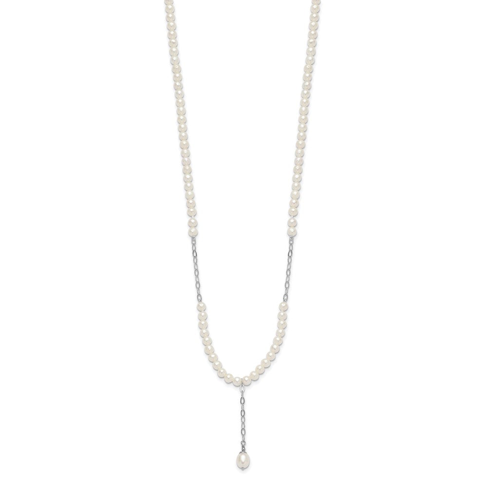 Rhodium-plated Silver FWC Pearl Dangle 18in Necklace Post Earrings Set