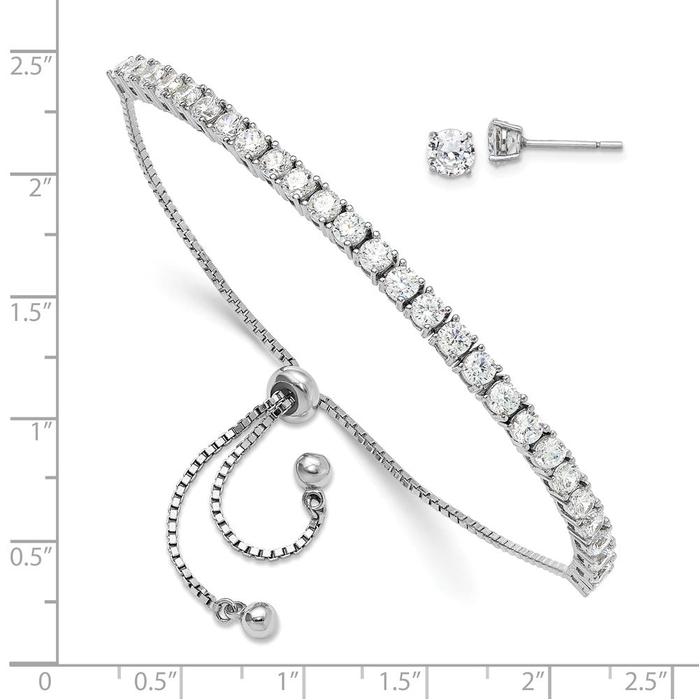 This is a beautiful Rhodium-plated Sterling Silver CZ Adjustable Bracelet and Post Earrings Set