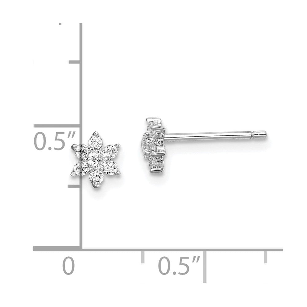 Rhodium-plated Sterling Silver CZ Flower Post Earrings