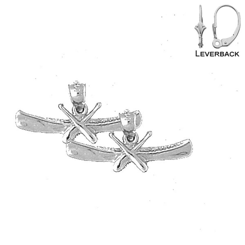 Sterling Silver 11mm Canoe With Paddles Earrings (White or Yellow Gold Plated)