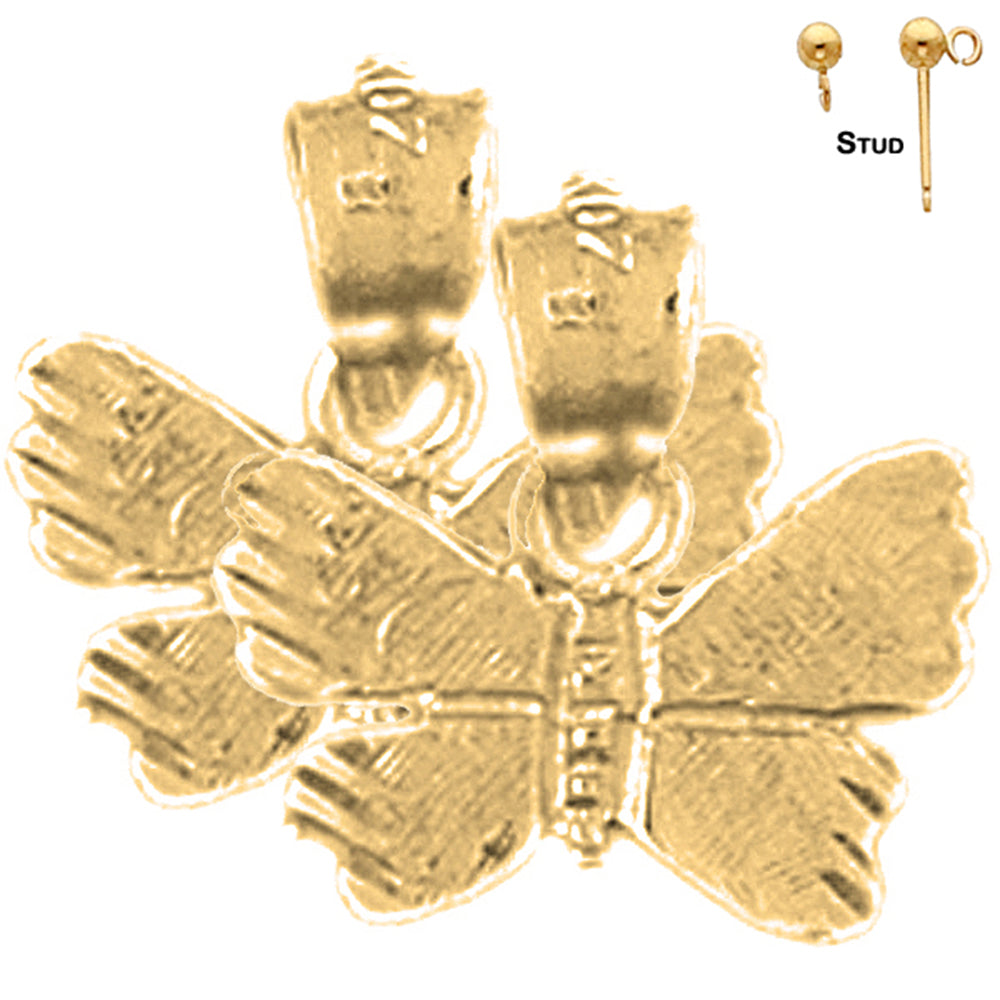 Sterling Silver 14mm Butterflies Earrings (White or Yellow Gold Plated)