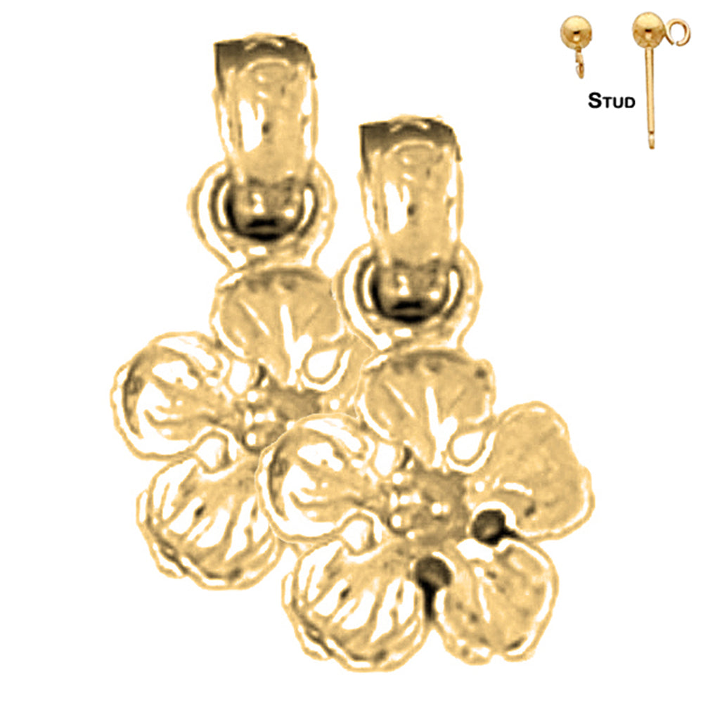 Sterling Silver 14mm Five Pedal Buttercup Flower Earrings (White or Yellow Gold Plated)