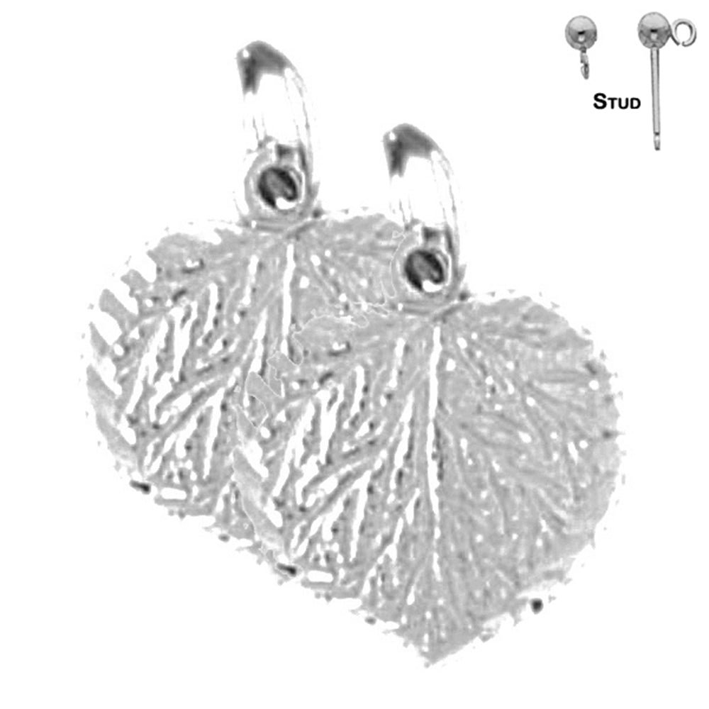 Sterling Silver 15mm Aspen Leaf Earrings (White or Yellow Gold Plated)