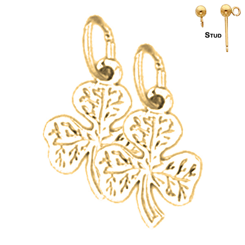 Yellow Gold-plated Silver 15mm Shamrock, Clover Earrings