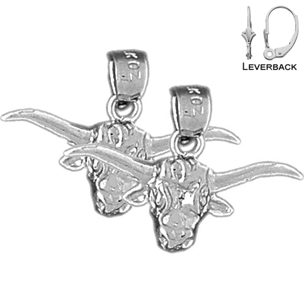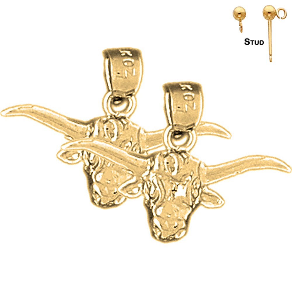 Sterling Silver 15mm Steer Head Earrings (White or Yellow Gold Plated)