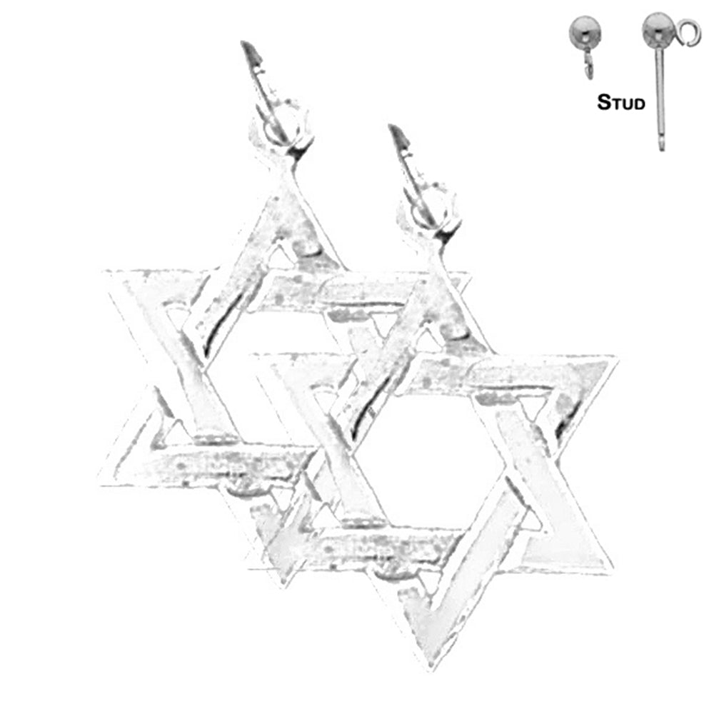 Sterling Silver 16mm Star of David Earrings (White or Yellow Gold Plated)