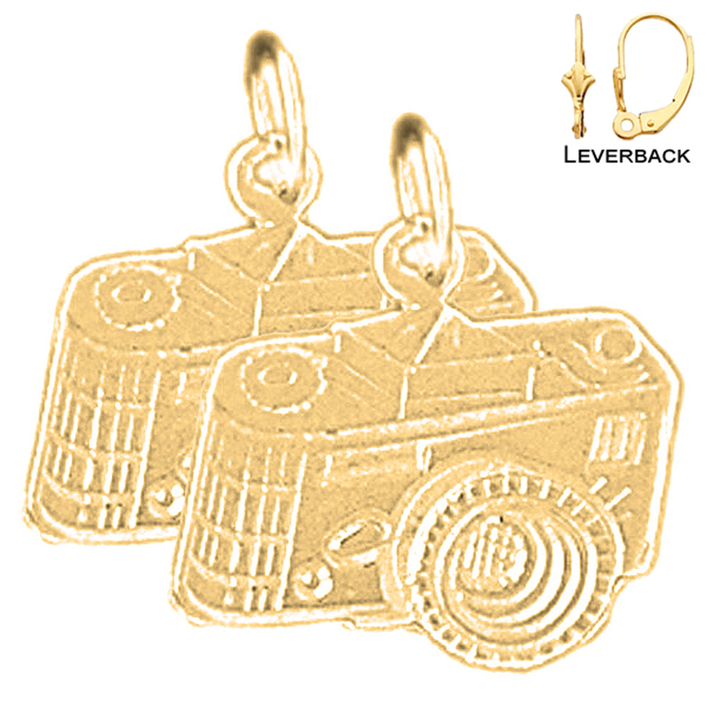 Sterling Silver 17mm Camera Earrings (White or Yellow Gold Plated)