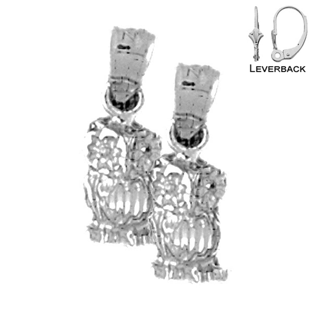 Sterling Silver 17mm Owl Earrings (White or Yellow Gold Plated)