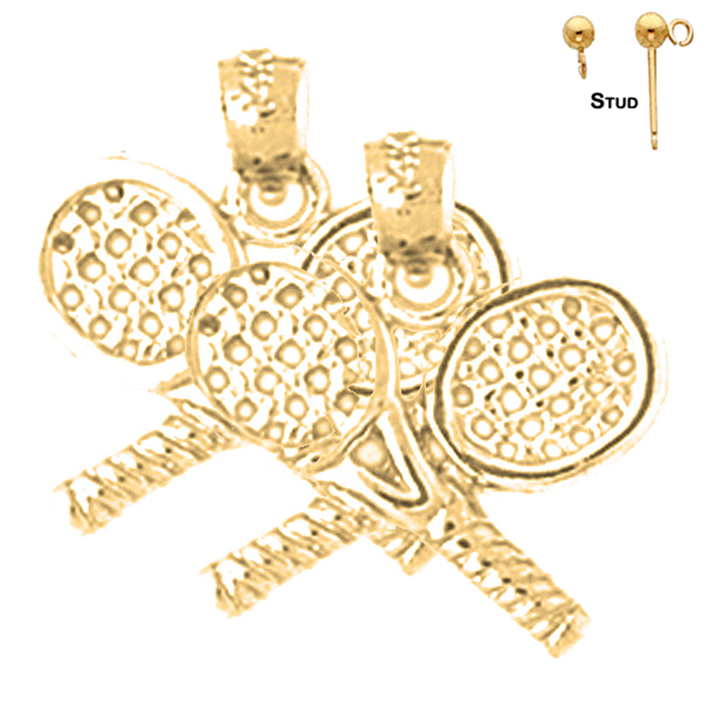Sterling Silver 17mm Tennis Racquets Earrings (White or Yellow Gold Plated)
