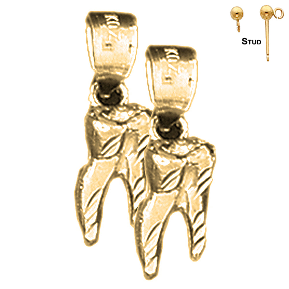 Sterling Silver 18mm 3D Tooth Earrings (White or Yellow Gold Plated)