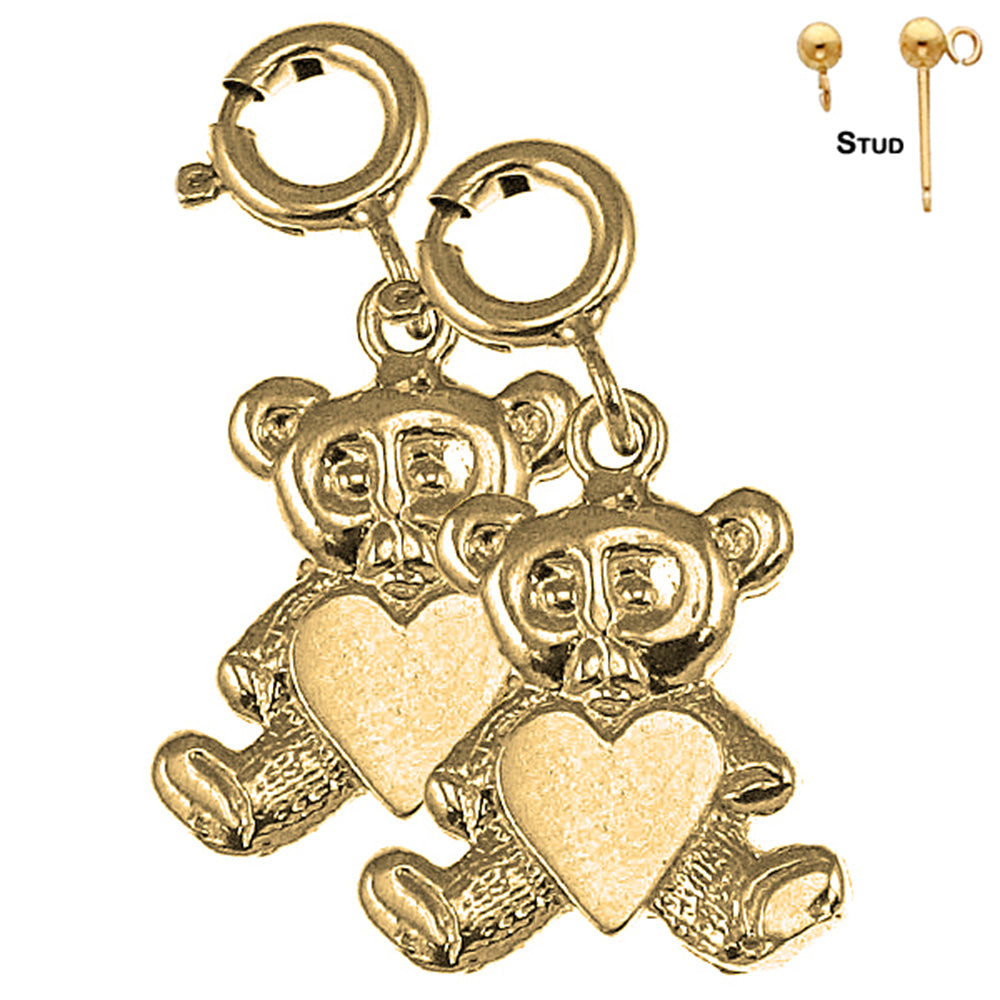 Yellow Gold-plated Silver 18mm Teddy Bear Earrings