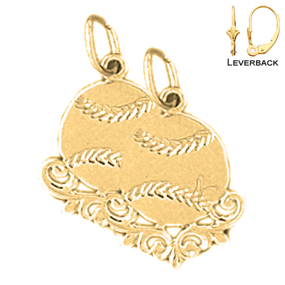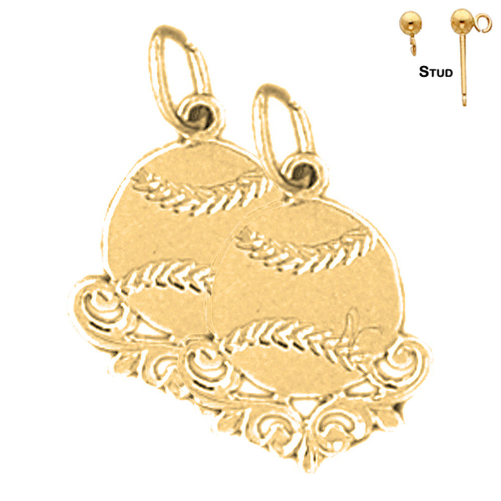 Yellow Gold-plated Silver 19mm Baseball Earrings