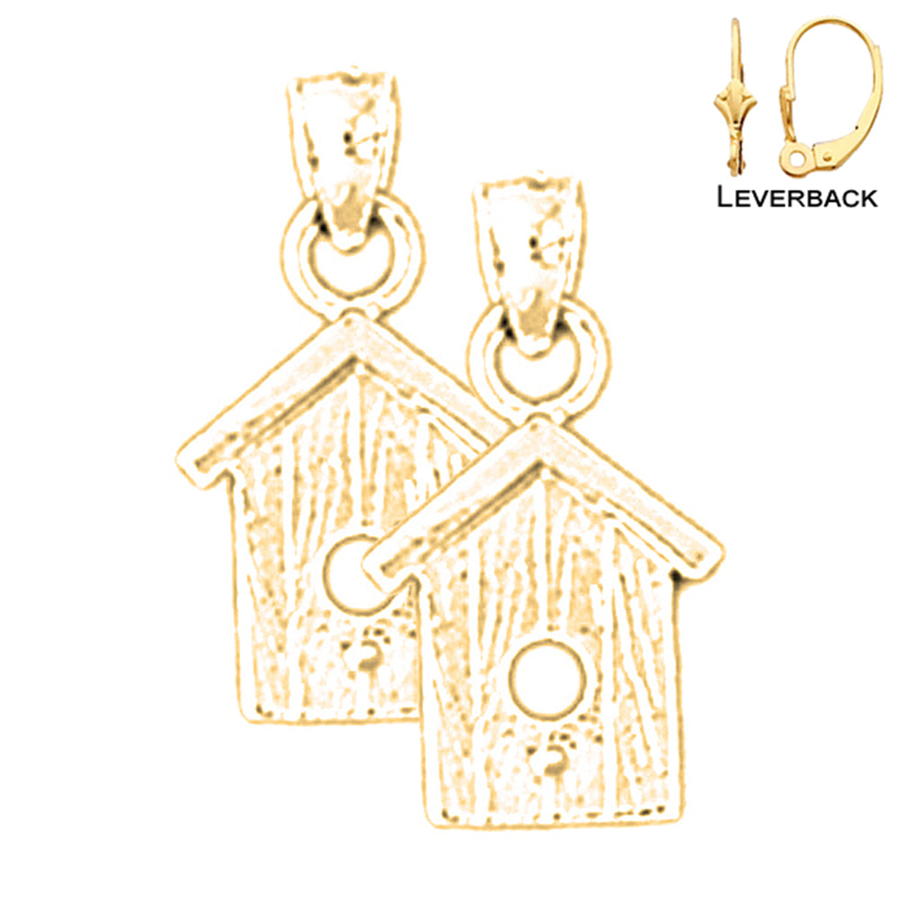 Sterling Silver 19mm Bird House Earrings (White or Yellow Gold Plated)