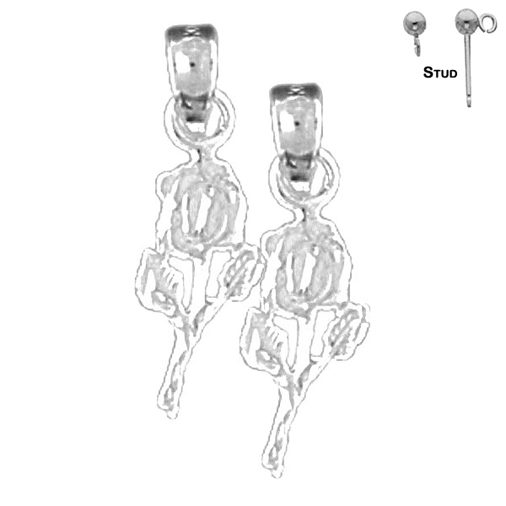 Sterling Silver 19mm Rose Flower Earrings