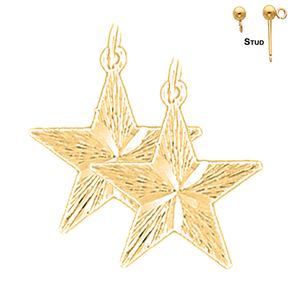 Sterling Silver 19mm Star Earrings (White or Yellow Gold Plated)