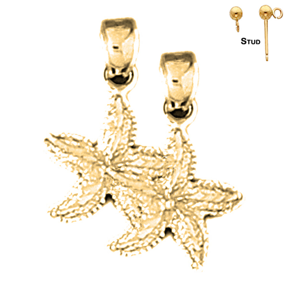Sterling Silver 19mm Starfish Earrings (White or Yellow Gold Plated)