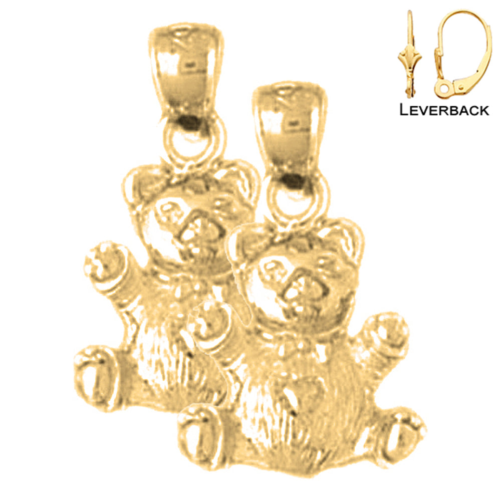 Yellow Gold-plated Silver 20mm 3D Teddy Bear Earrings