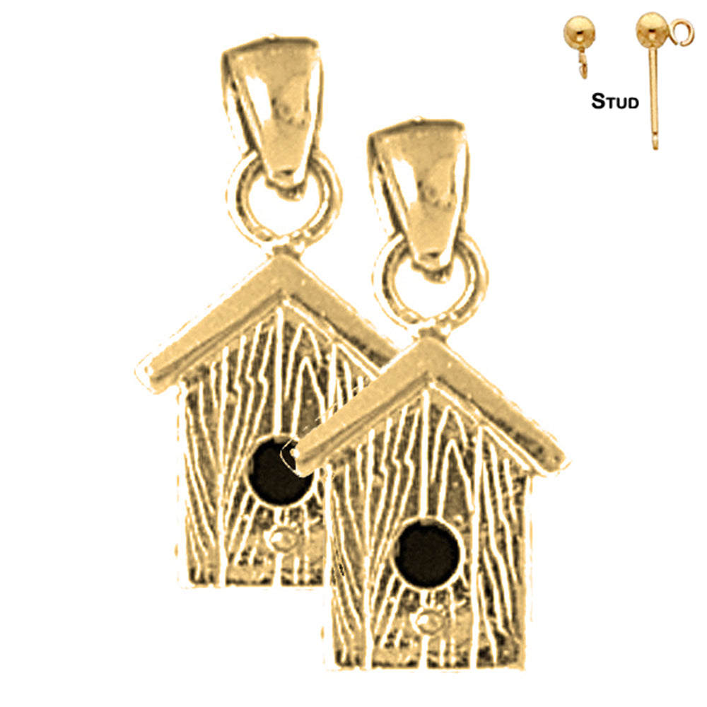 Sterling Silver 20mm Bird House Earrings (White or Yellow Gold Plated)