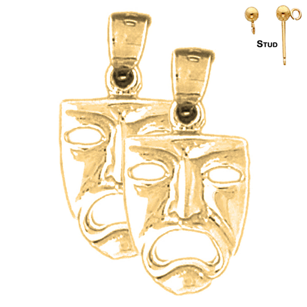 Sterling Silver 20mm Drama Mask, Cry Later Earrings (White or Yellow Gold Plated)