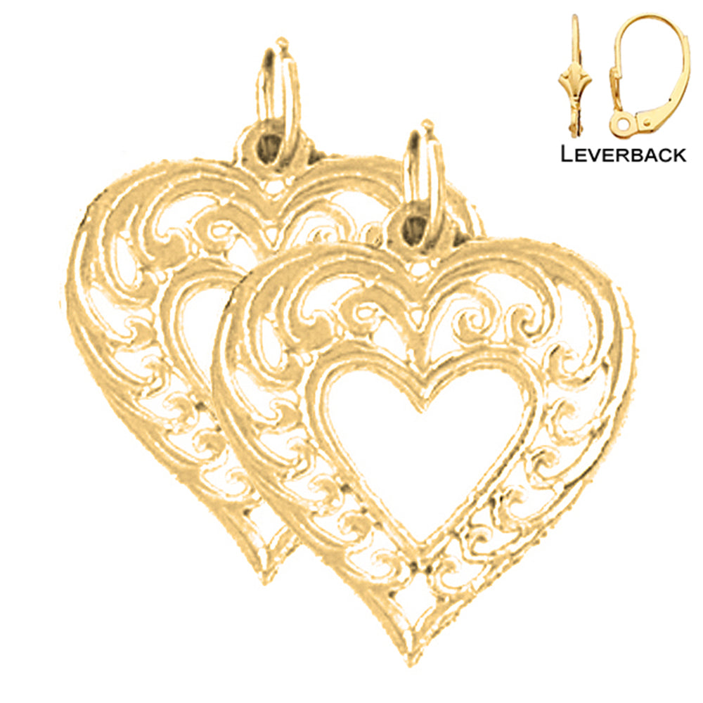 Sterling Silver 20mm Heart Earrings (White or Yellow Gold Plated)