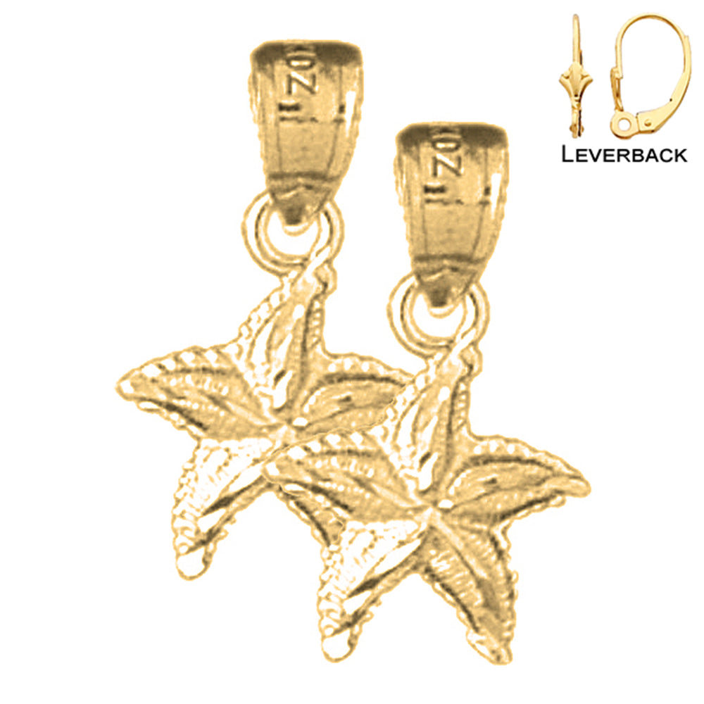 Sterling Silver 20mm Starfish Earrings (White or Yellow Gold Plated)
